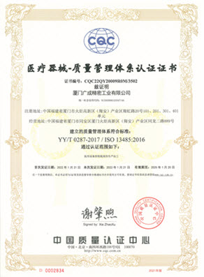 Passed the certificate of Medical Device Quality System ISO13485:2016