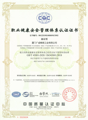 Passed the certificate of occupational health and safety management system ISO45001:2018 -